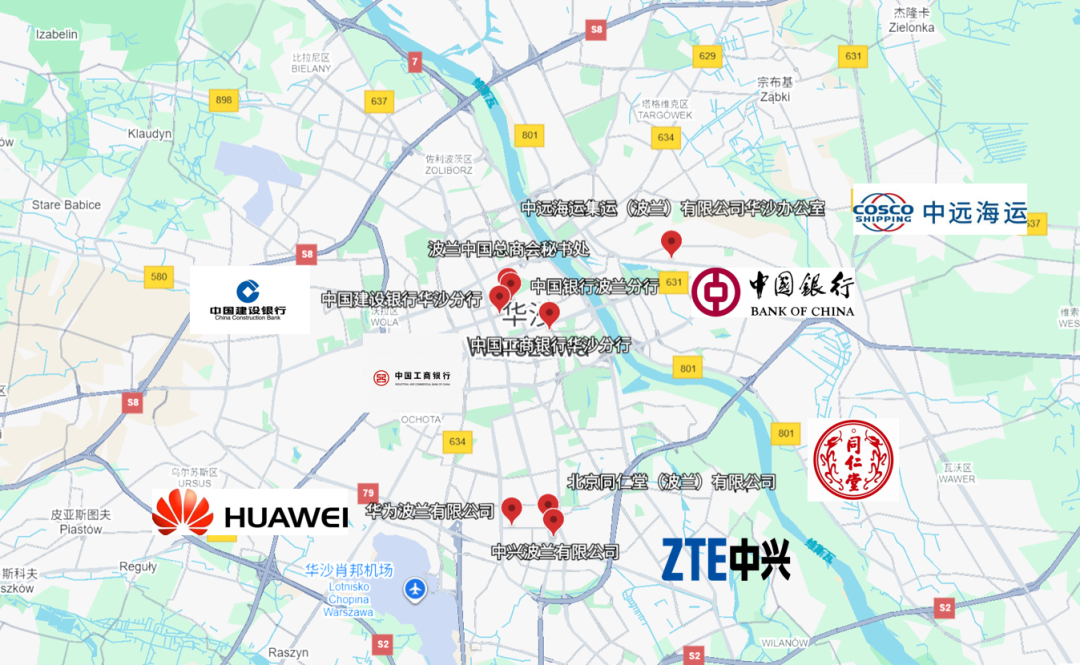 (波兰华沙中资企业分布图)