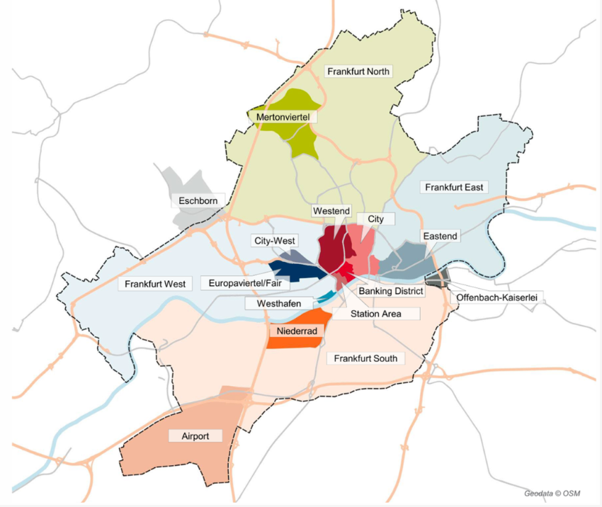 法兰克福市2025年近 40% 的写字楼吸纳量来自高溢价写字楼项目,而过去五年间,这一占比的平均值约为 20%。因此,这一变化推动租金水平出现显著上涨。